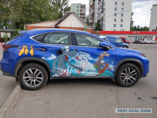 Вчера, прогуливаясь с работы на маршрутный транспорт, лицезрел вот такой прекрасный экземпляр японского автопрома, с изображением героев отечественной мультипликации. Аж приятно стало )
